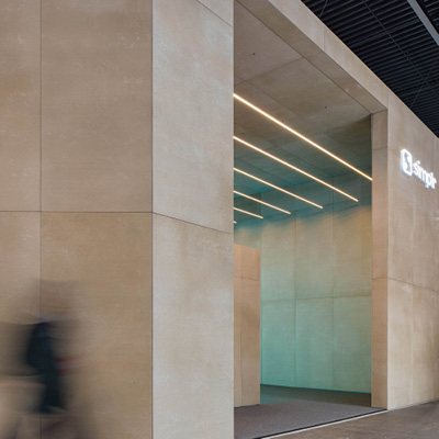 In this project, the designers opted to use HONEXT® Boards as partition walls and ceiling coverings to create a minimalistic and inviting booth. The boards are left in their raw state without any finishing, highlighting their natural characteristics. The exposed boards showcase their unique texture and distinct color shades, adding to the overall aesthetic appeal of the booth. This approach allows for easy dismantling of the partition walls after the trade show, enabling the reintegration of the boards and preventing any waste at the end of the event.